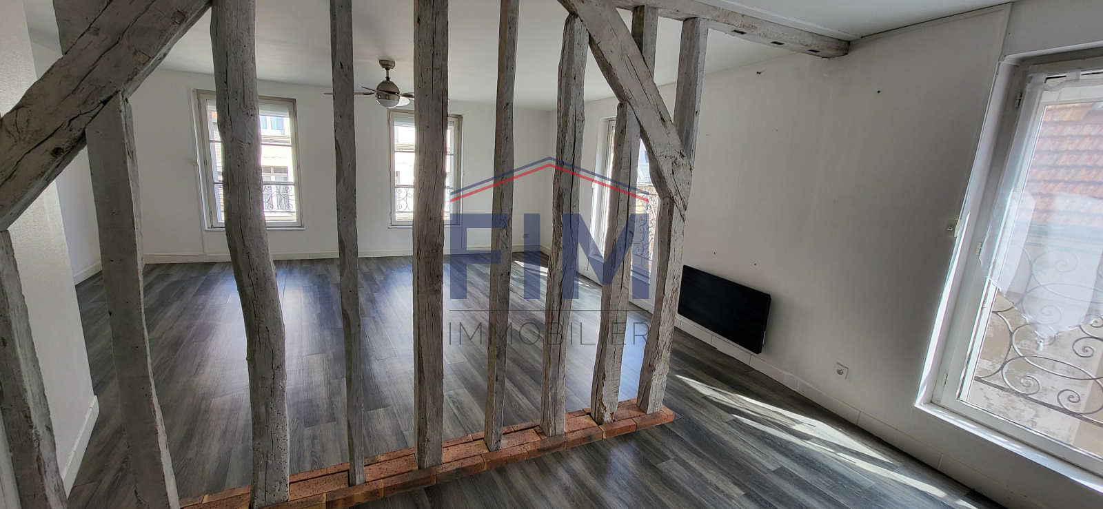 IL SE COMPOSE D'UNE ENTREE DONNANT SUR UN VASTE SEJOUR-SALON AVEC POUTRES APPARENTES OUVERT SUR LA CUISINE EQUIPEE, DEUX CHAMBRES, 1 SALLE D'EAU , WC, CAVE , DEGAGEMENT.