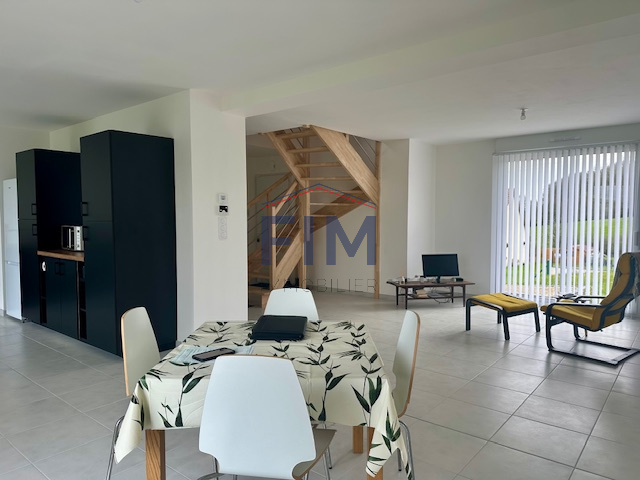Dès l’entrée, vous serez séduit par un vaste séjour-salon lumineux, bénéficiant d’une luminosité traversante grâce à ses nombreuses portes vitrées, créant une atmosphère chaleureuse et moderne. Cet espace de vie s’ouvre sur une cuisine aménagée et équipée, pensée pour allier esthétisme et fonctionnalité.