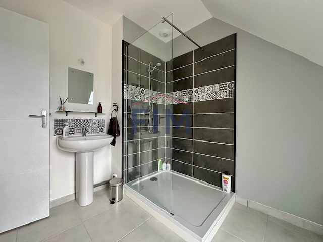 À l’étage, un palier dessert trois chambres lumineuses, une salle d’eau moderne et des WC indépendants, constituant un espace nuit agréable et bien agencé.