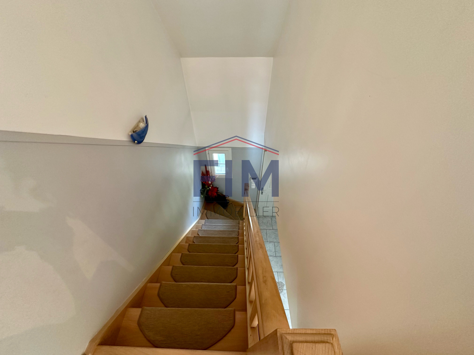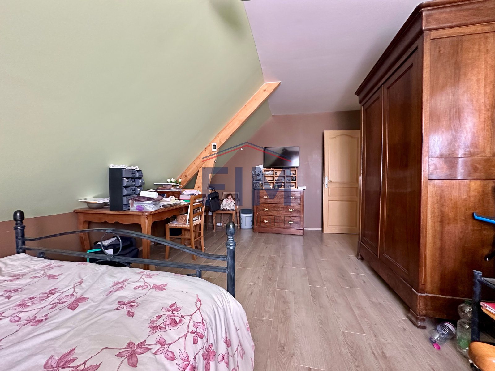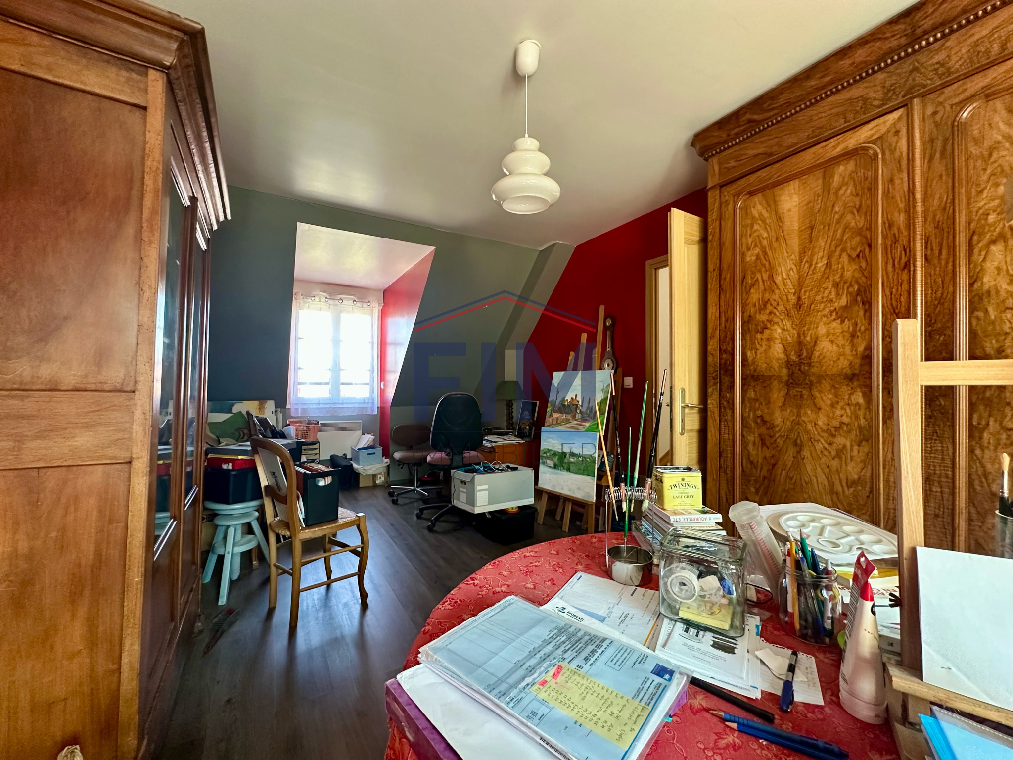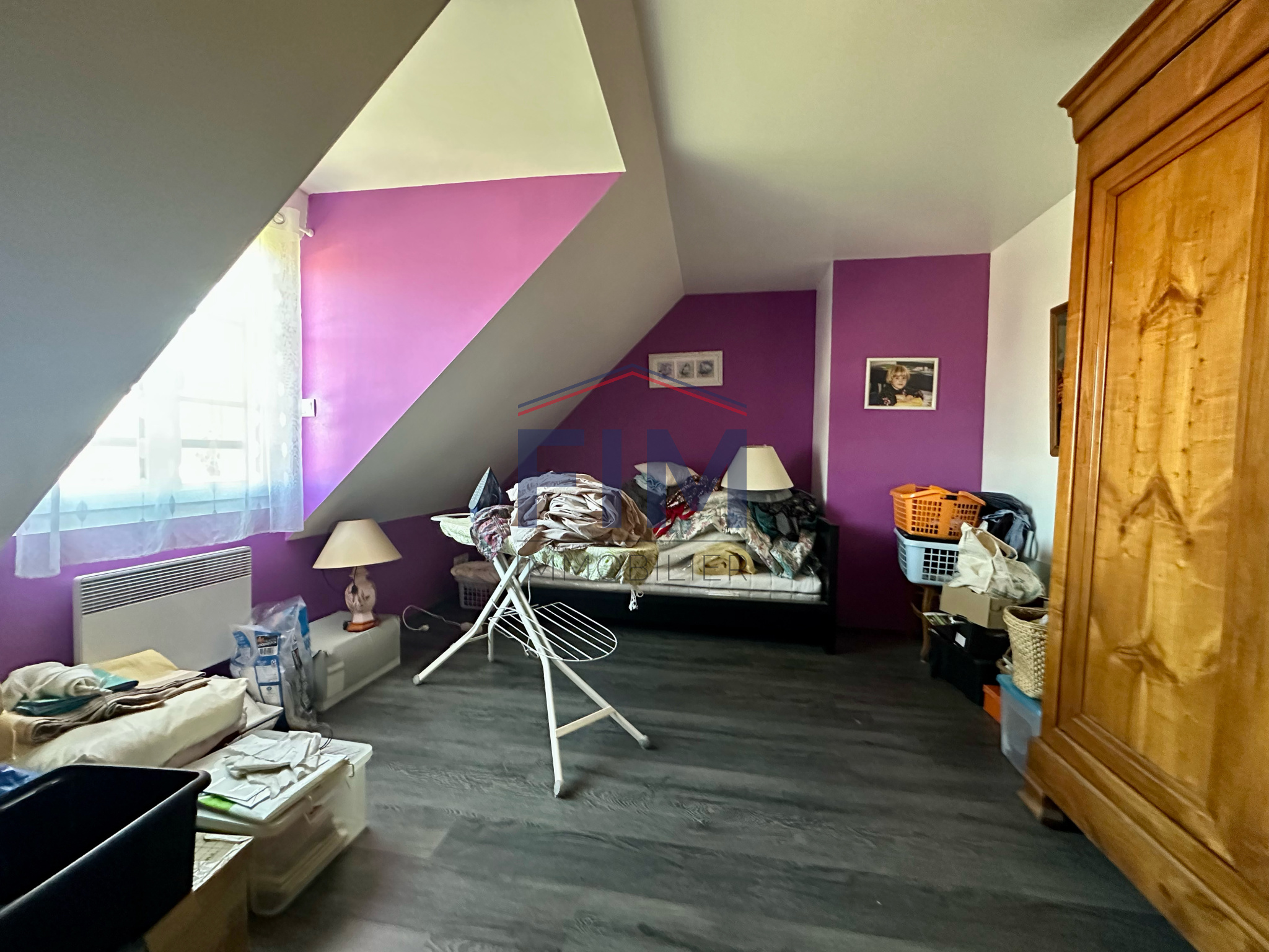 À l’étage, un palier desservant trois belles chambres ainsi qu’une salle de bains avec WC.