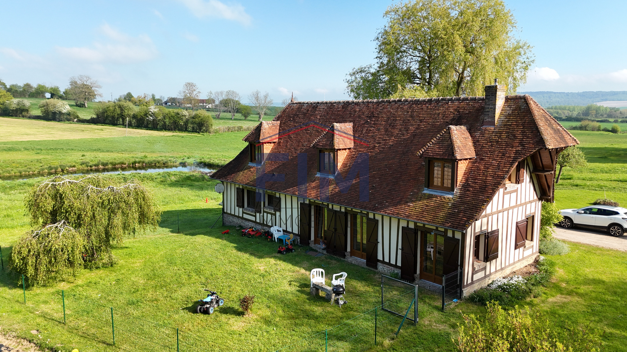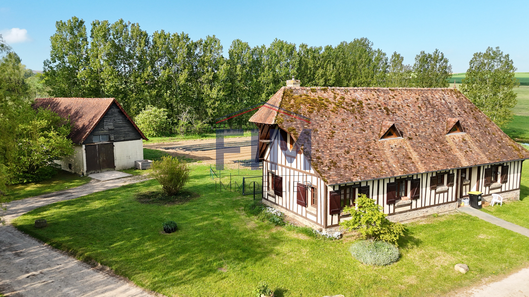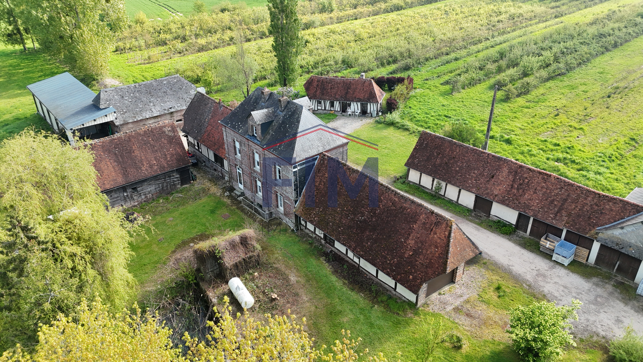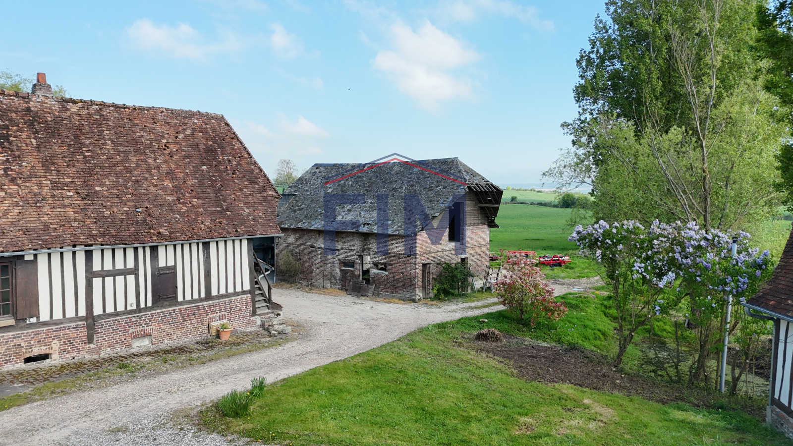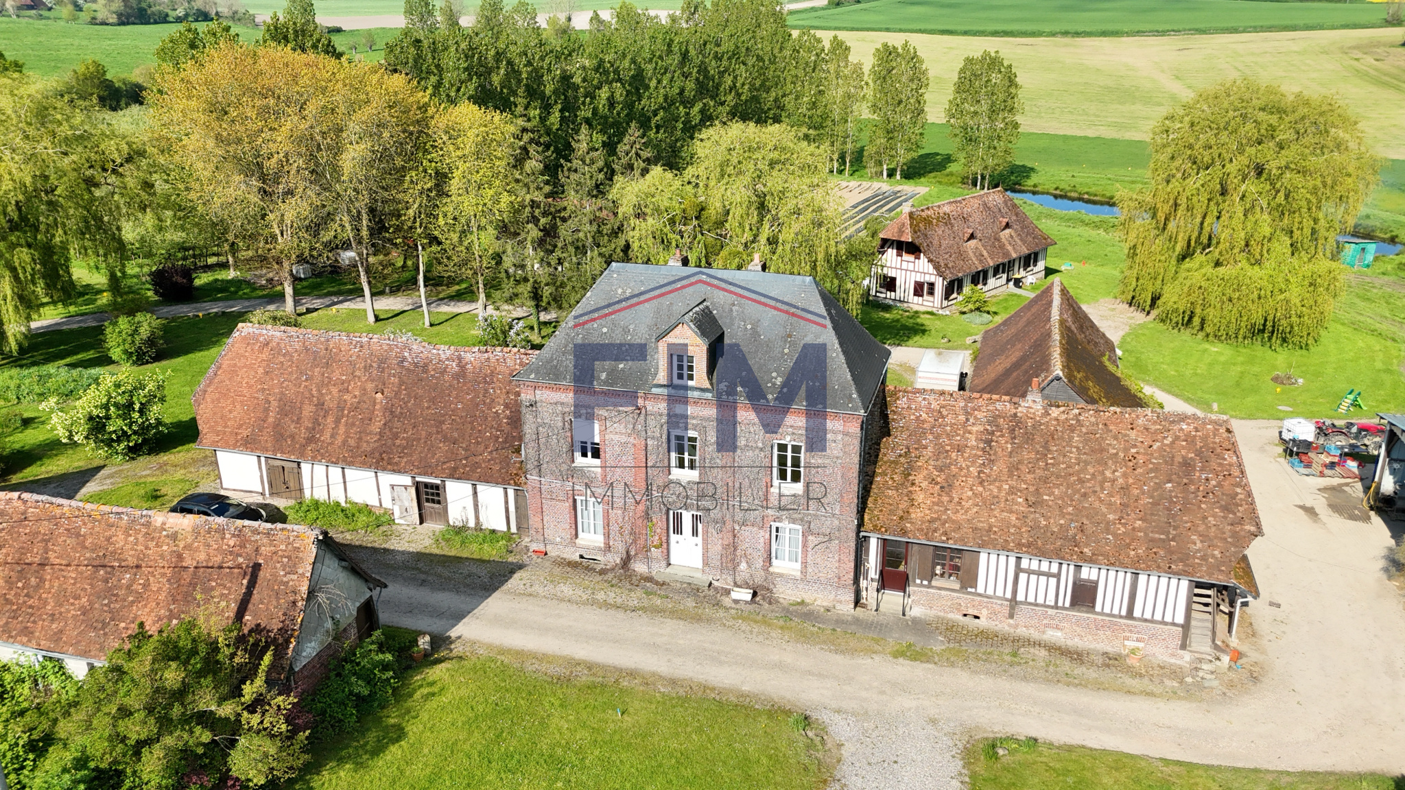 Neufchâtel-en-Bray (76270)Chez FIM Immobilier, découvrez à seulement 8 minutes de Neufchâtel-en-Bray, un magnifique domaine au fort potentiel, niché dans un environnement paisible et verdoyant. Ce bien d’exception se compose d’un ancien corps de ferme à rénover, construit en matériaux traditionnels mêlant briques et colombages, et couvert d’ardoises et de tuiles plates normandes. Cette bâtisse de caractère offre de beaux volumes et une distribution idéale : une entrée desservant un salon avec cheminée, un séjour avec cheminée à foyer ouvert agrémentée d’un chauffe-plat, un bureau, une cuisine, une arrière-cuisine, un cellier ainsi que des WC indépendants. À l’étage, un palier distribue quatre chambres ainsi qu’une salle d’eau avec WC. Le deuxième niveau accueille une cinquième chambre ainsi que deux greniers situés aux extrémités. En sous-sol, deux caves complètent l’ensemble. Attenants à la maison, vous trouverez également une pièce de sport et un garage équipé d’une porte motorisée. Le domaine comprend également une seconde habitation actuellement louée, construite dans les années 1990. Ce pavillon, édifié en béton et couvert de tuiles plates, propose une entrée, un séjour/salon avec insert à bois, une cuisine, deux chambres, une salle de bains et des WC indépendants. À l’étage, un palier dessert trois chambres supplémentaires ainsi qu’une salle de bains avec WC. Un charmant gîte indépendant de 31 m², de style normand avec colombages et tuiles plates, vient compléter la propriété. Il se compose d’un séjour avec poêle à bois, d’une cuisine, d’une chambre et d’une salle d’eau avec WC — idéal pour une activité touristique ou pour recevoir. Plusieurs dépendances à usage de stockage, garages et annexes offrent encore de nombreuses possibilités. En complément, il est possible d’acquérir jusqu’à 7 735 m² de terrain supplémentaires (parcelles de 2 379 m² et 5 356 m²). Un bien rare offrant de multiples projets : résidence familiale, investissement locatif ou activité touristique. Les informations sur les risques auxquels ce bien est exposé sont disponibles sur le site géorisques: www.georisques.gouv.fr 440 000 € Honoraires à la charge des vendeurs Contacter Mr Dorian Marais au 02 35 93 92 01, agent commercial E.I N° RSAC : 989639695 Dieppe