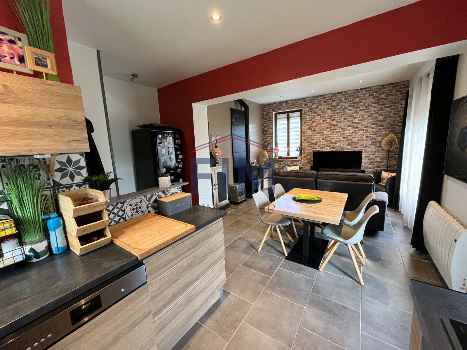 Malaunay (76770)EXCLUSIVITE MALAUNAY Ravissante maison mitoyenne d'un côté entièrement rénovée avec une décoration tendance située dans une rue calme et exposée plein sud, comprenant :