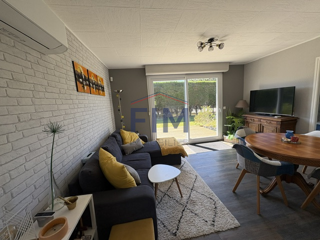 Elle se compose d'une belle pièce de vie lumineuse avec baie vitrée, ouverte sur la cuisine équipée, deux chambres ainsi qu'une salle de bains avec wc.