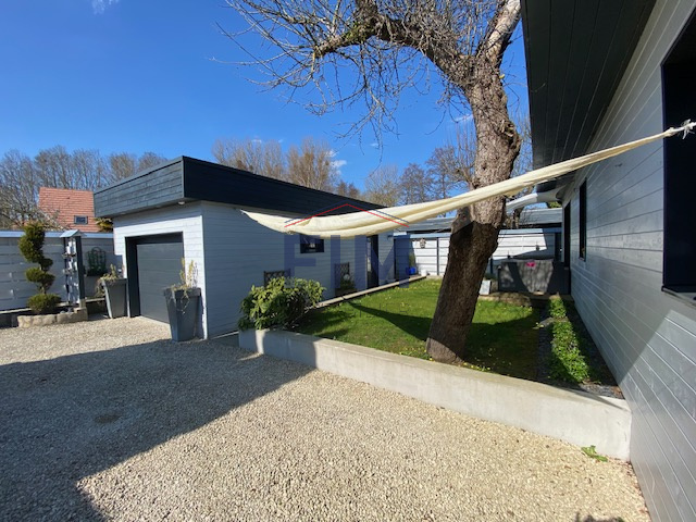 À l’extérieur, profitez de deux terrasses dont une couverte, sur un terrain clos de 512?m² avec garage et atelier. Les prestations incluent des vitres anti-effraction, un chauffage au sol par pompe à chaleur, et aucun travaux à prévoir.