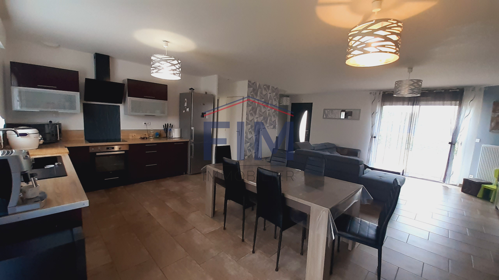 Ce pavillon encore sous garantie décennale comprend une très belle cuisine équipée ouverte sur un grand séjour/salon, le tout d'une superficie de 51 m², deux grandes baies traversantes permettant l'accès aux deux côtés du jardin.