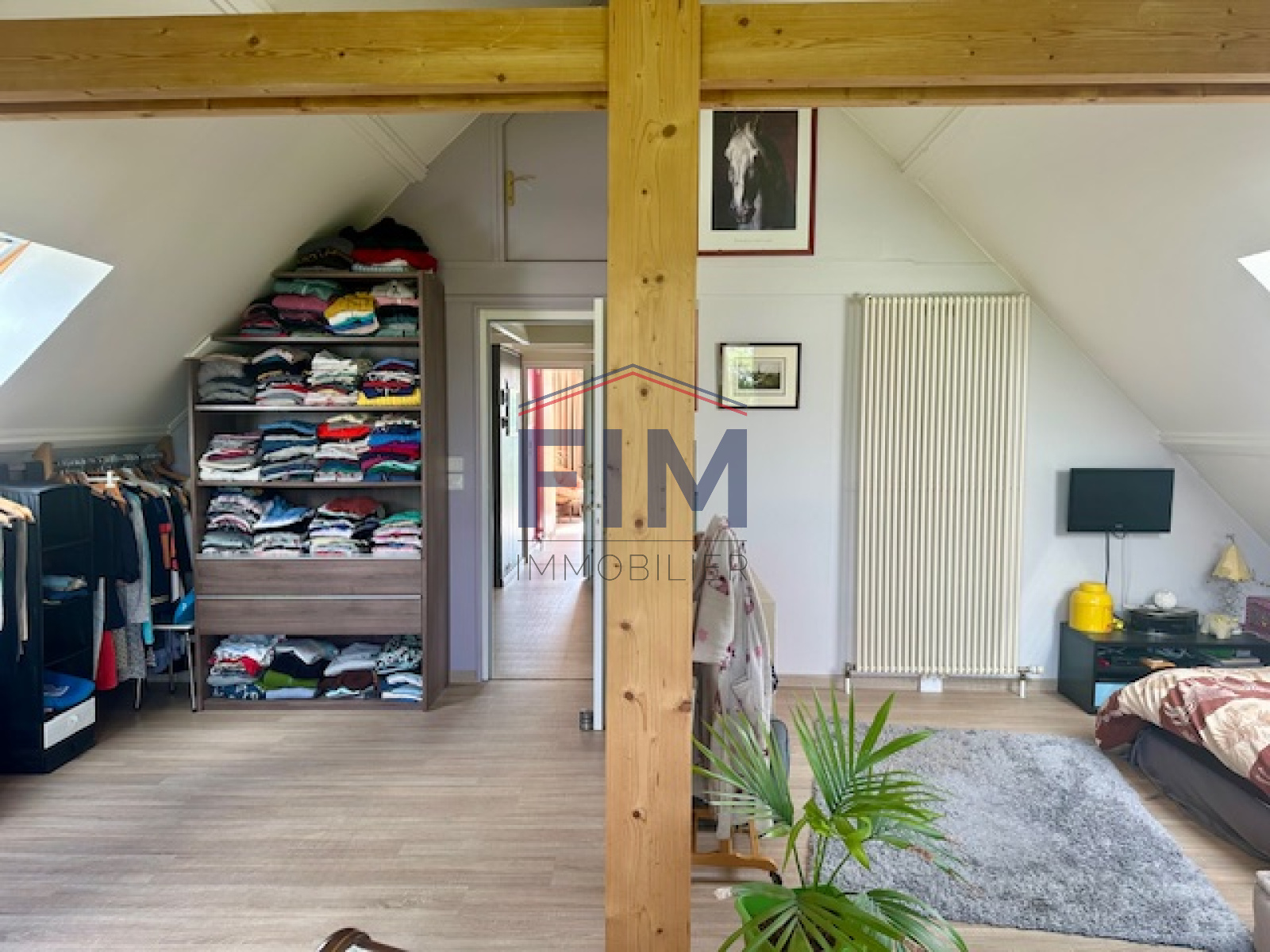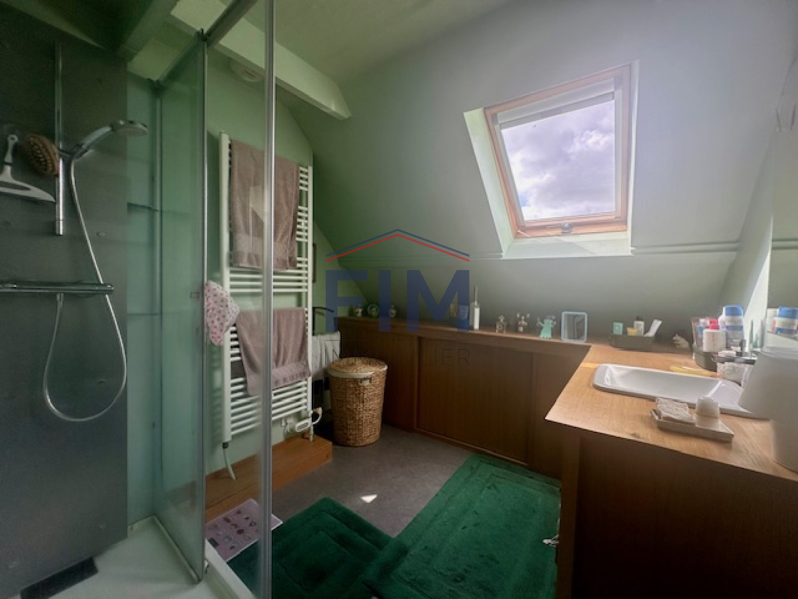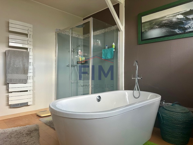 Le rez-de-chaussée abrite également une belle suite parentale composée d’une chambre confortable, d’un dressing et d’une salle de bains avec douche, offrant intimité et praticité au quotidien.